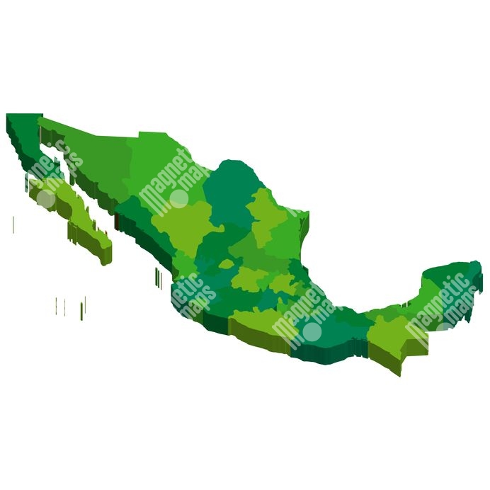 Carte magnétique du Mexique, illustré, vert