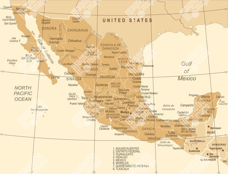 Carte magnétique du Mexique, vintage, beige