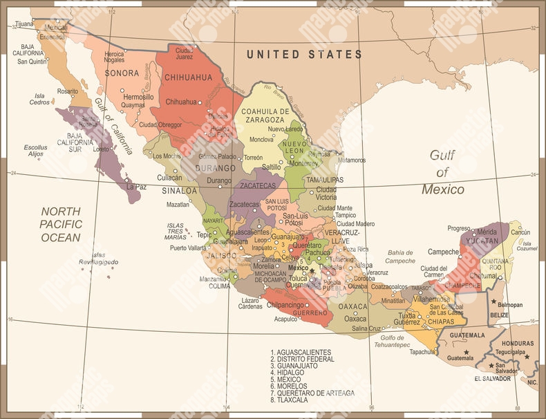 Carte magnétique du Mexique, vintage, COLOREE