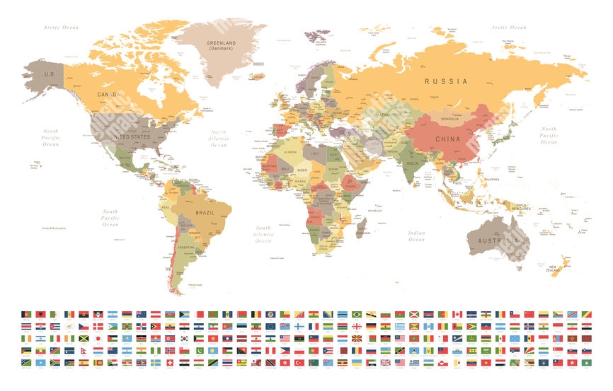Carte magnétique du monde, vecteur, avec des drapeaux