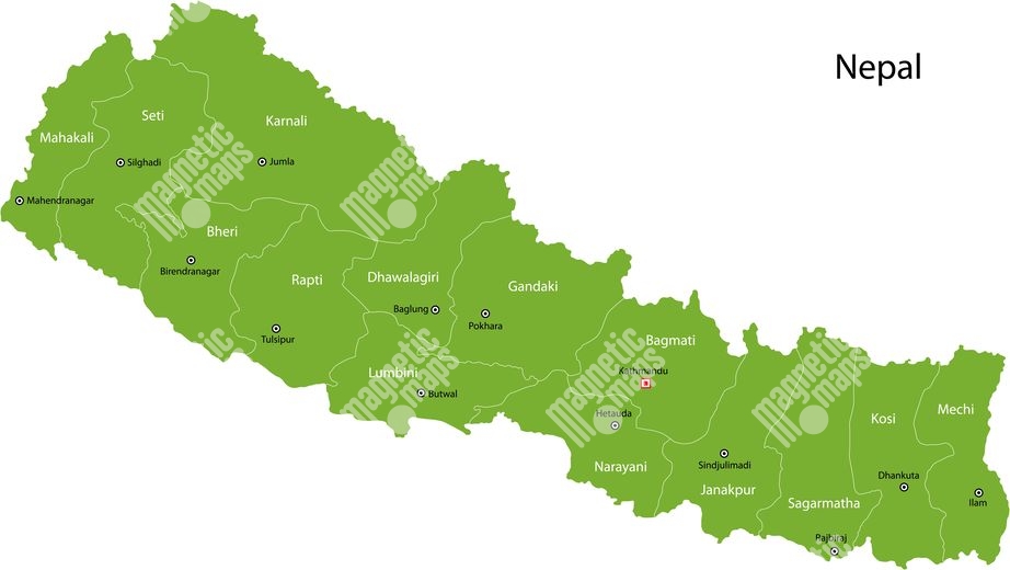 Carte magnétique du Népal, illustré, vert