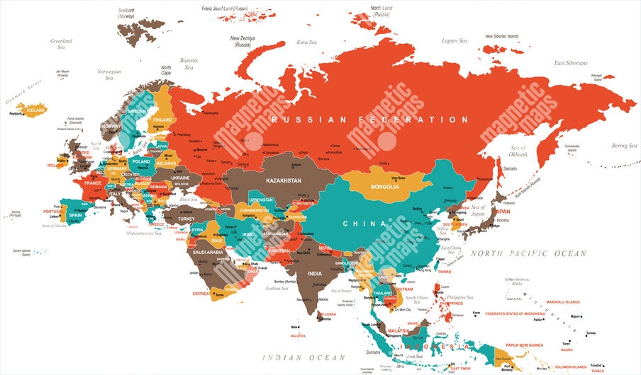 Carte magnétique Eurasie - Europe et Asie, illustré, COLOREE