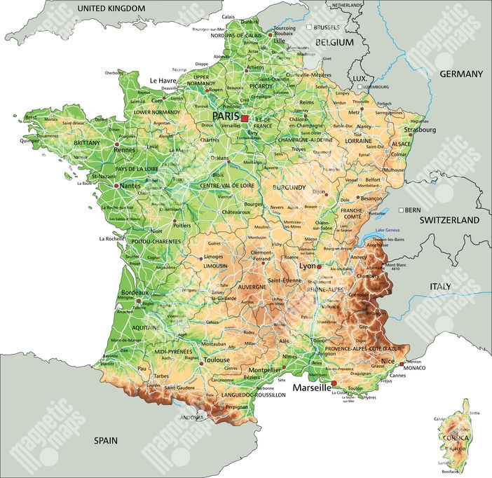 Carte magnétique France, géographique, COLOREE