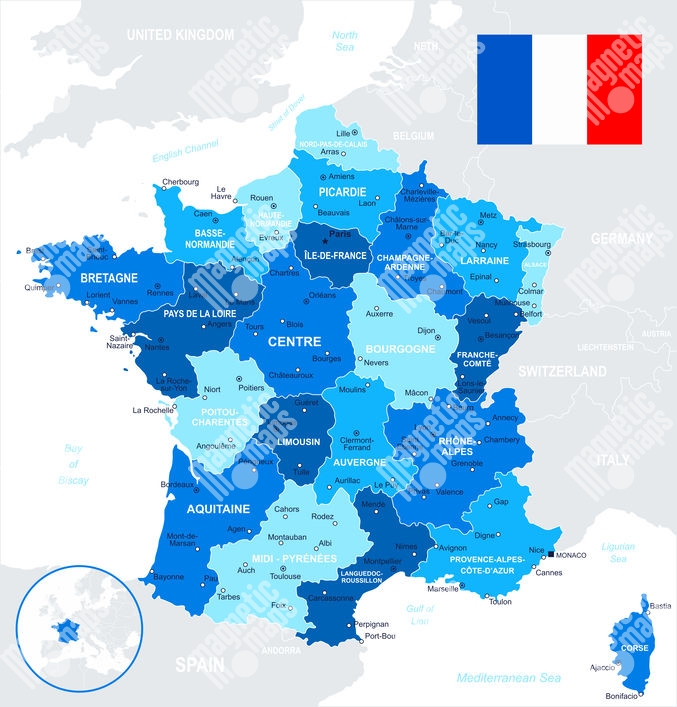 Carte magnétique France, illustré, bleu