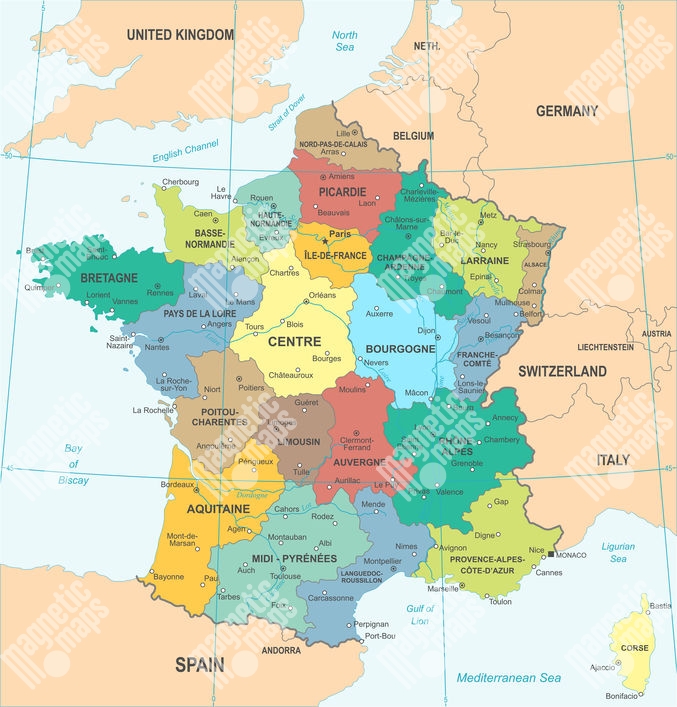 Carte magnétique France, illustré, COLOREE