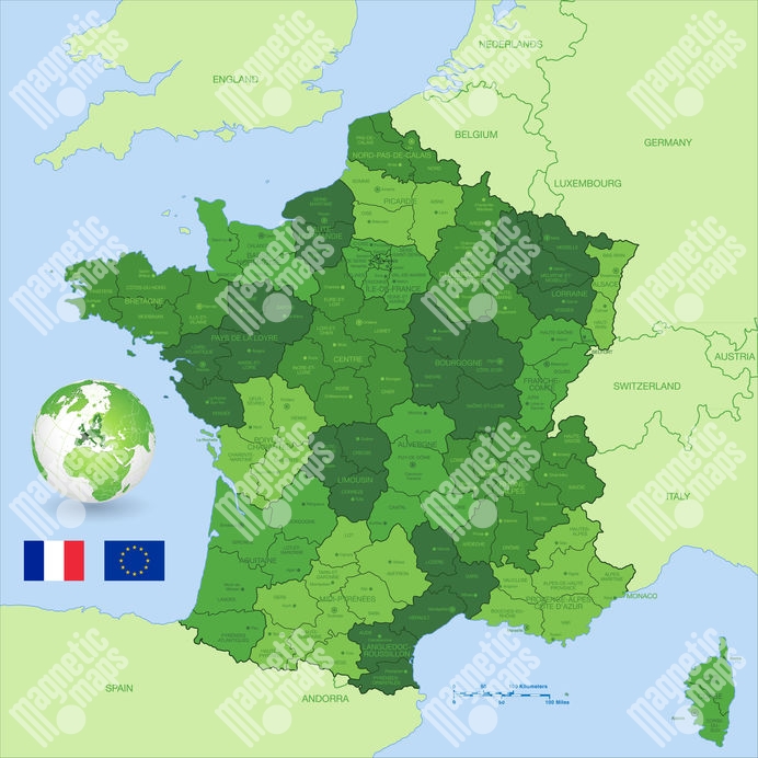 Carte magnétique France, illustré, vert