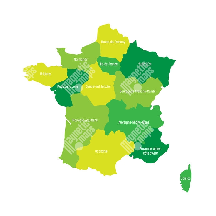 Carte magnétique France, illustré, vert-jaune