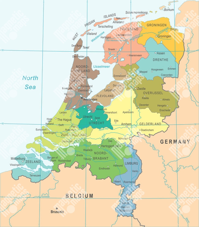 Carte magnétique Les pays-bas, illustré, COLOREE