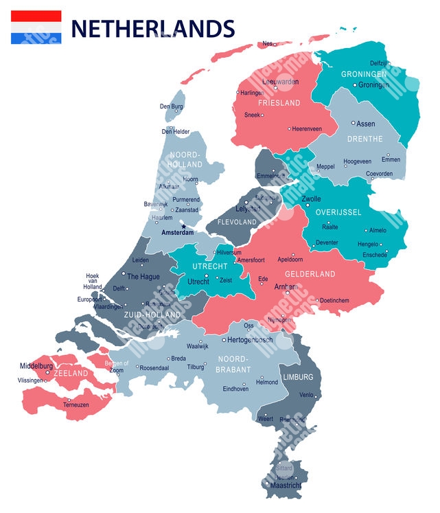 Carte magnétique Les pays-bas, illustré, COLOREE
