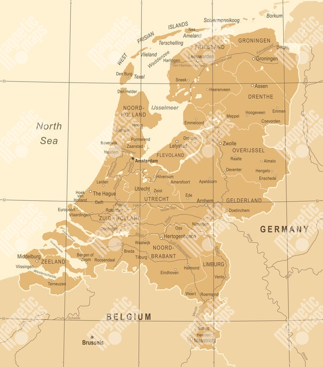 Carte magnétique Les pays-bas, vintage, beige